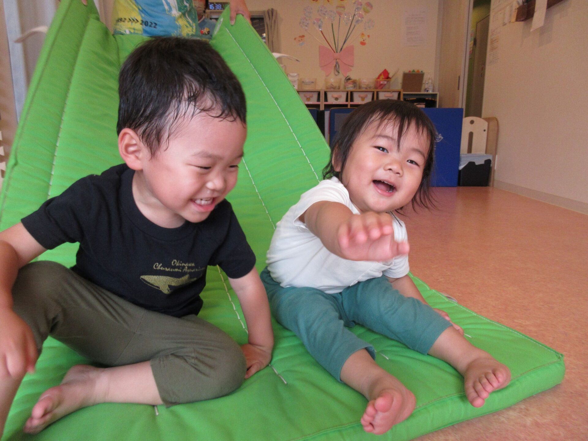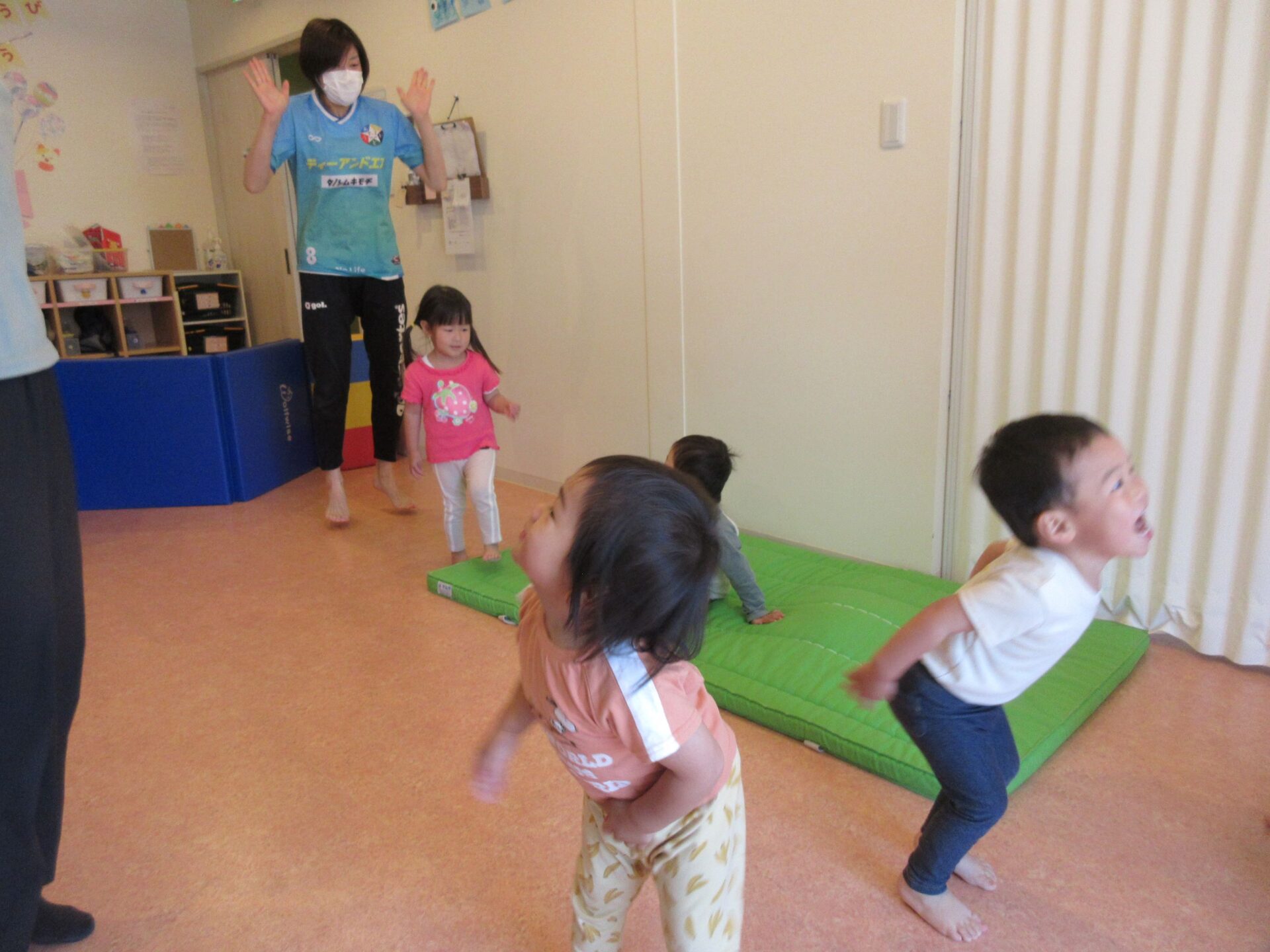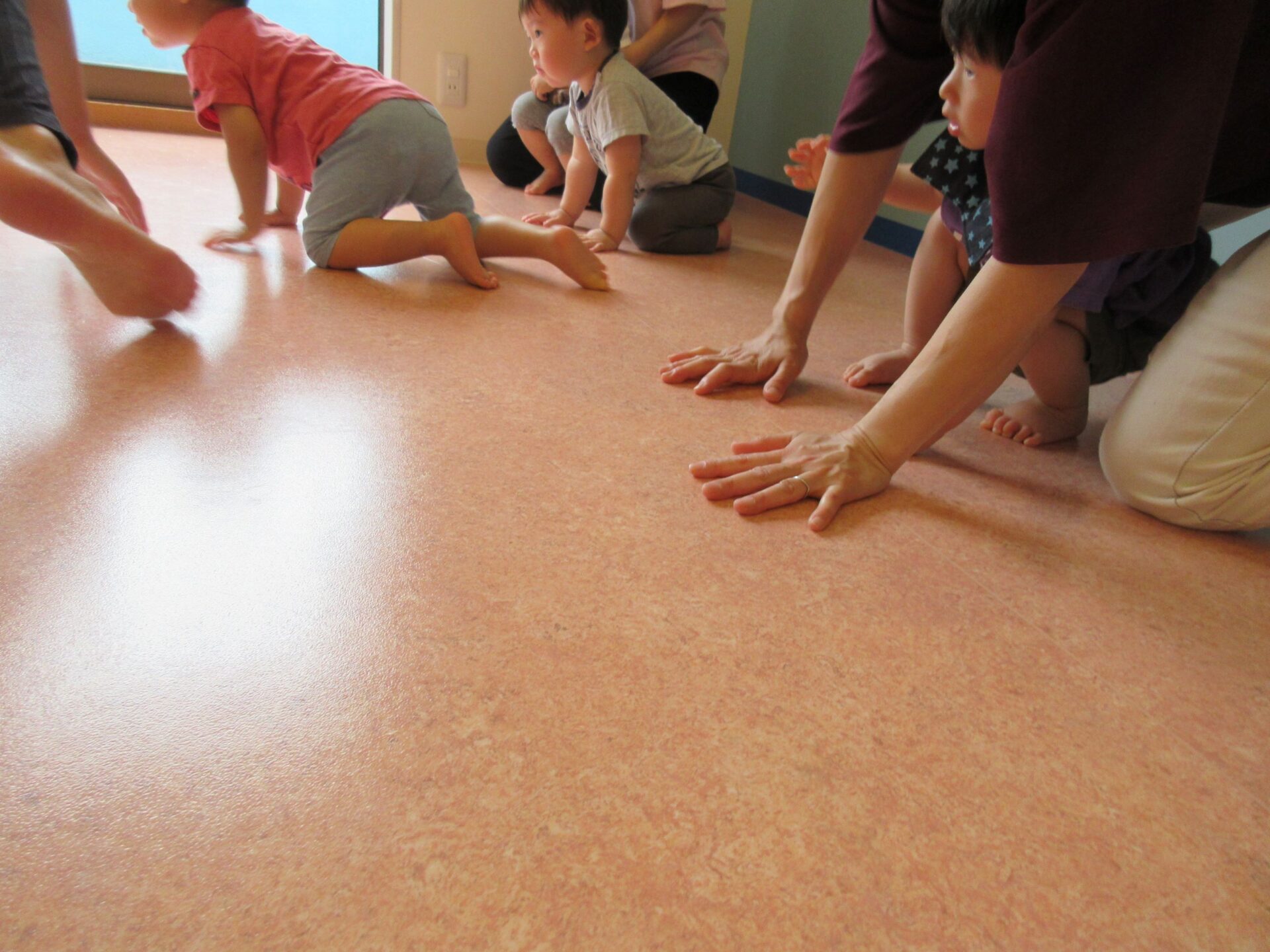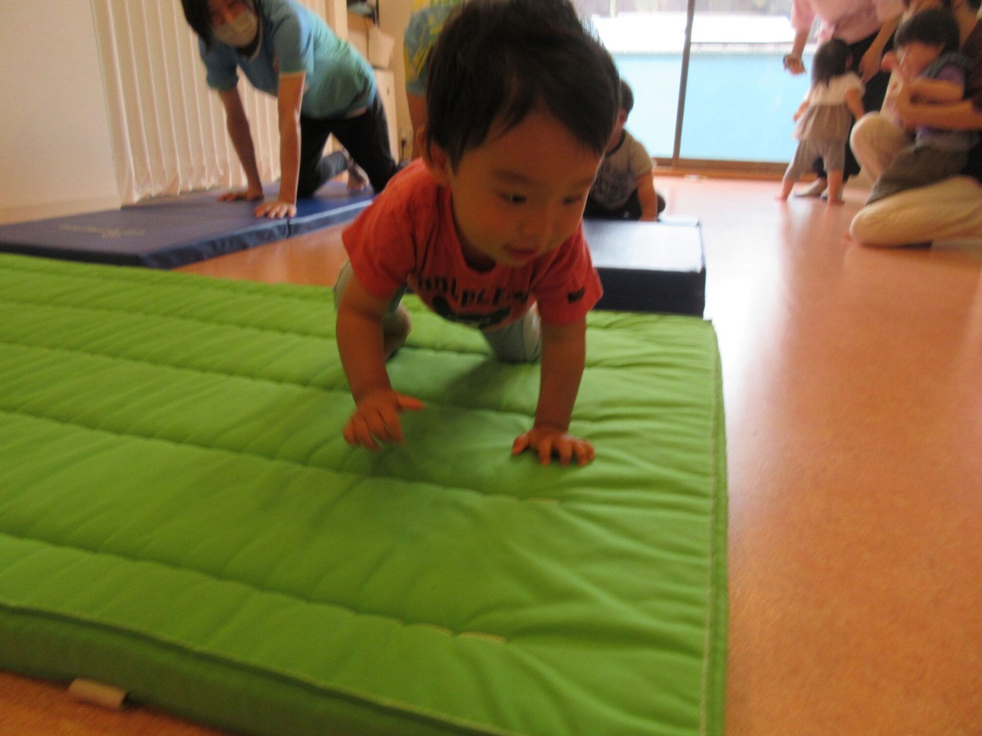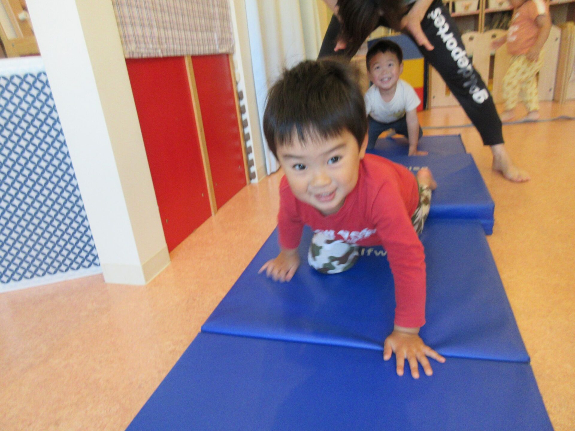 2歳児さんは、なんと後ろ向きのクマさん歩きもできました!すごい!!