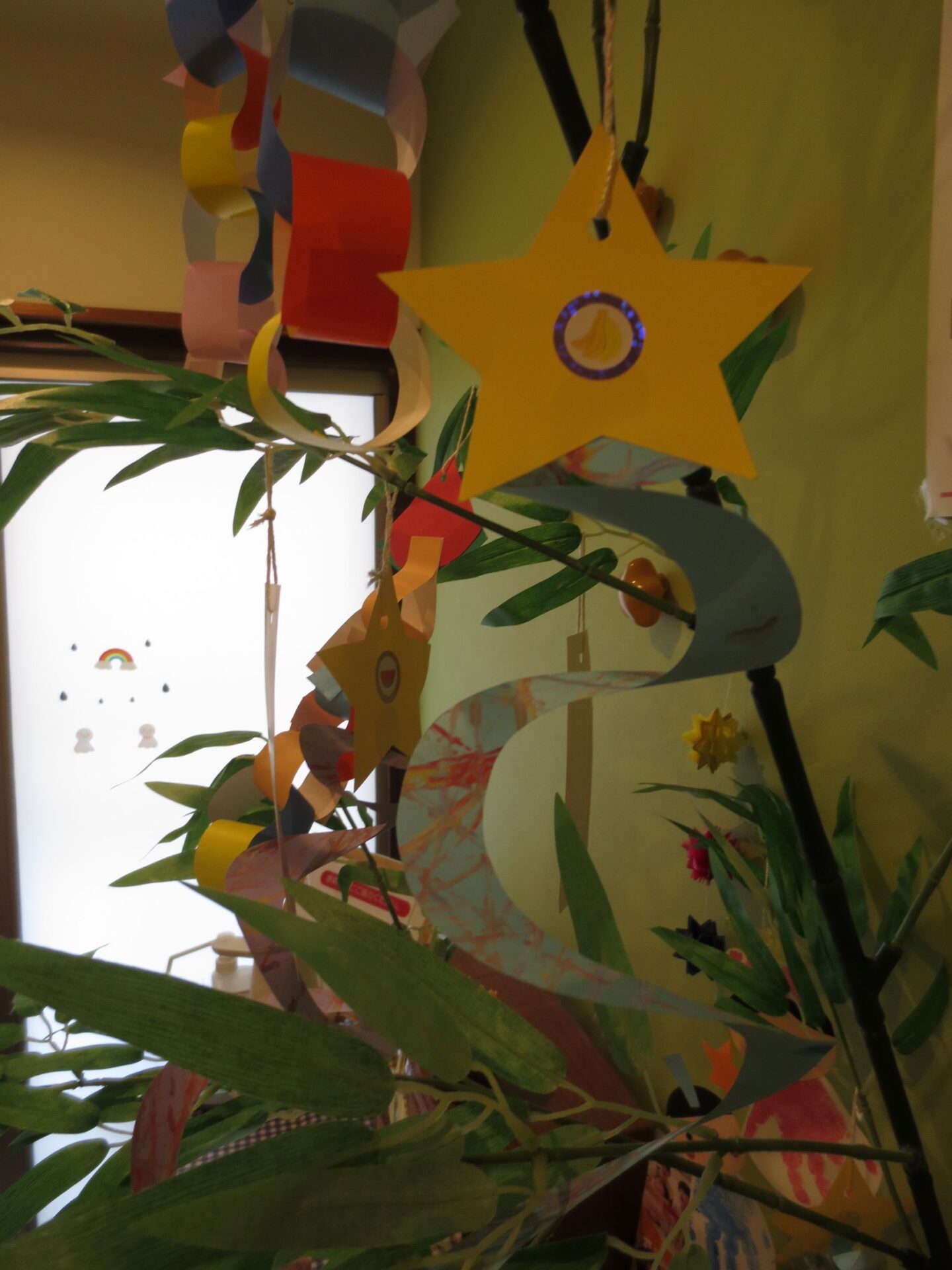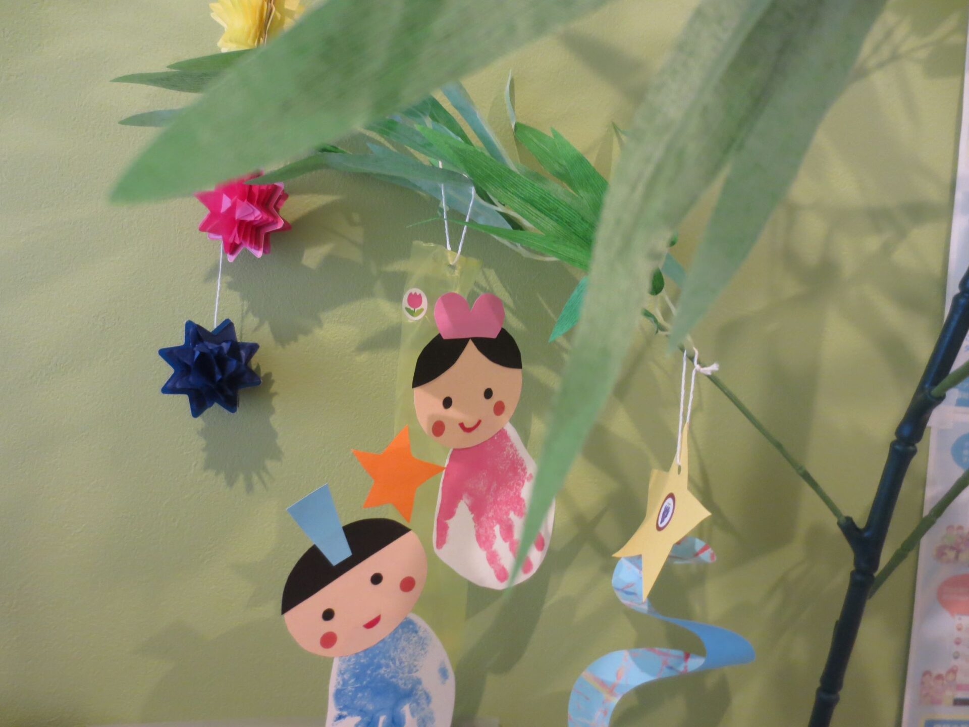 短冊にお願いごとを書いてもらい、お家の方といっしょに飾ってもらいました。