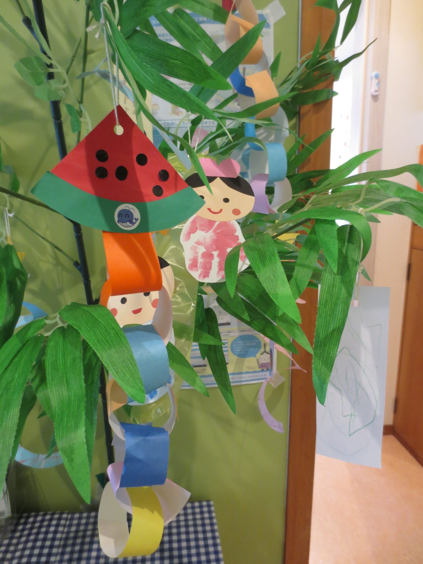 唐橋くじら小規模保育園では、七夕に向けて玄関に笹を出しました。