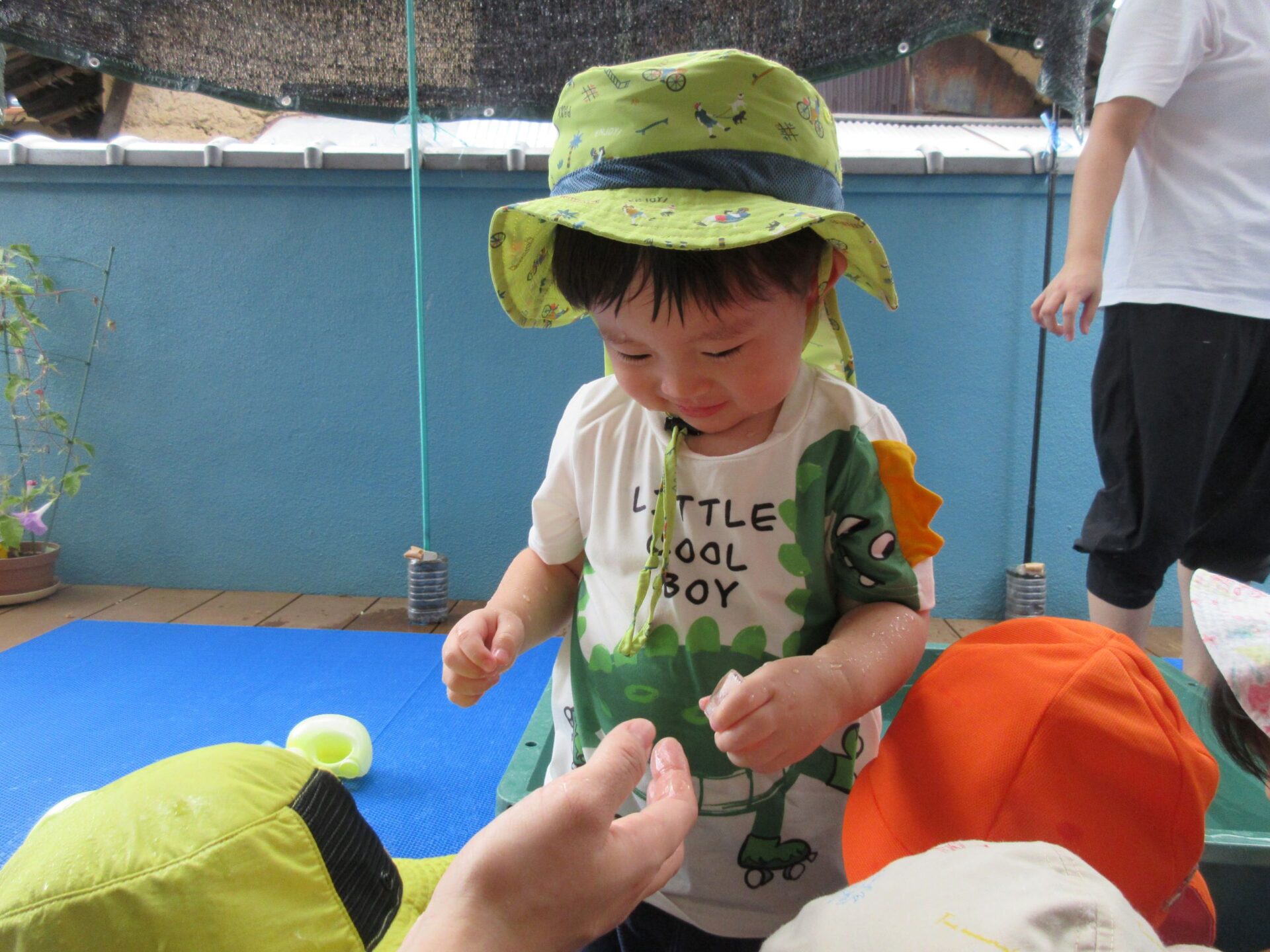 氷がだんだん溶けて小さくなっていく姿も、しっかり観察していた2歳児さんでした。