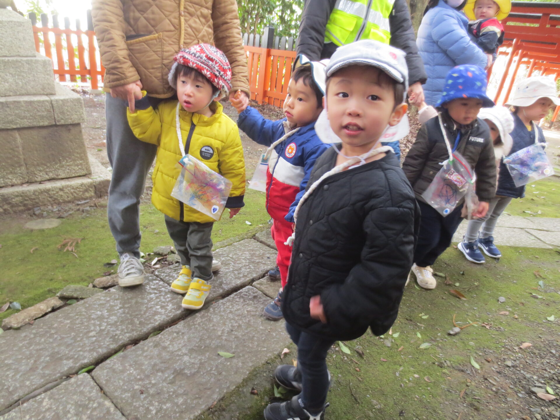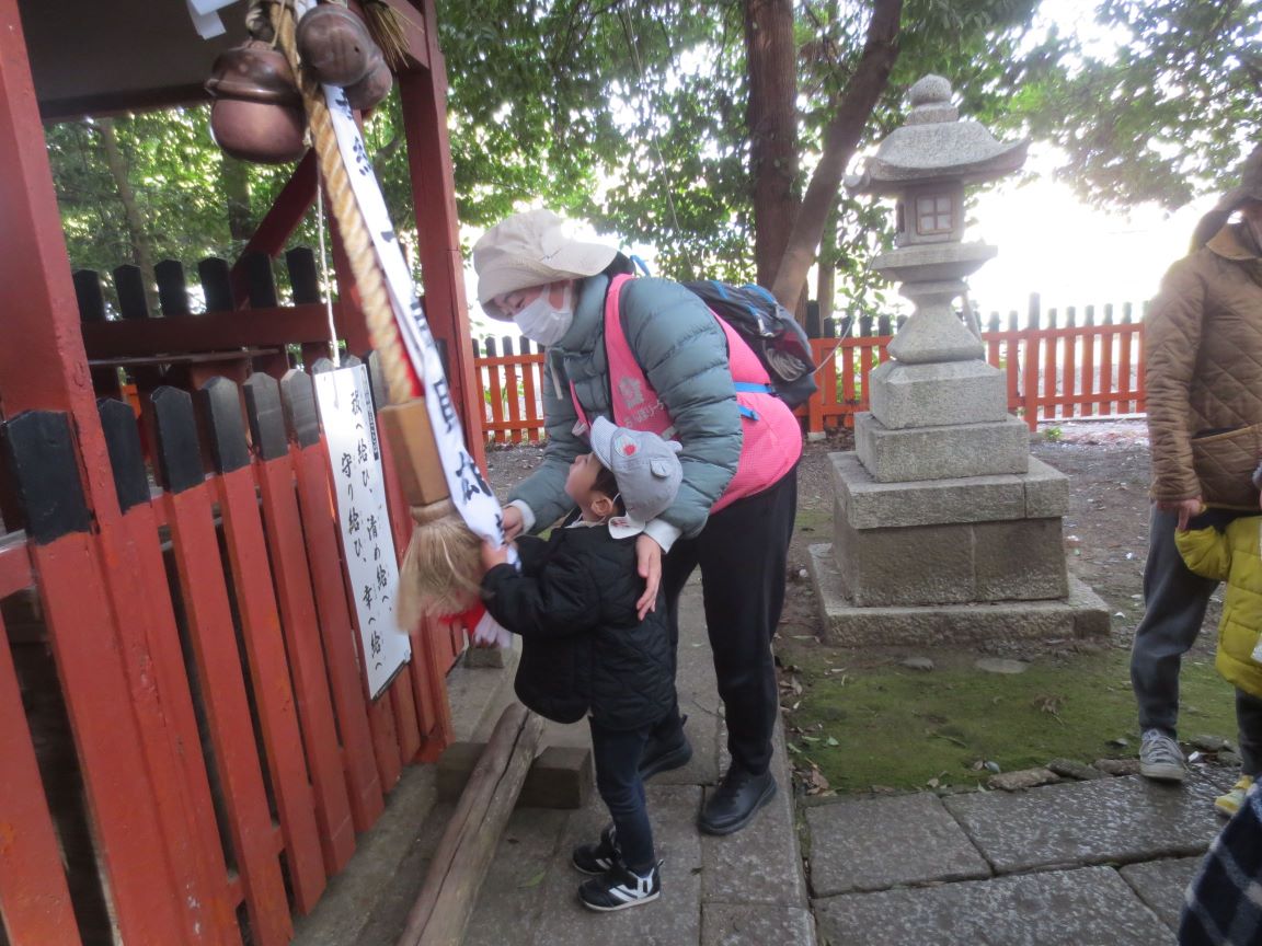 新年がスタートし、元気いっぱいの子ども達と、お散歩がてら、徒歩10分の御霊神社へ初詣に行きました。