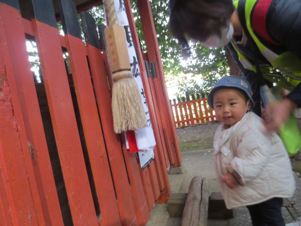 両手を合わせて👏・・・色々な願いを込めて・・・0歳児さんも1,2歳児さんの真似をしてお詣りしました。