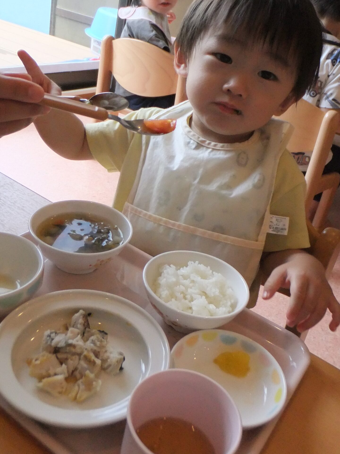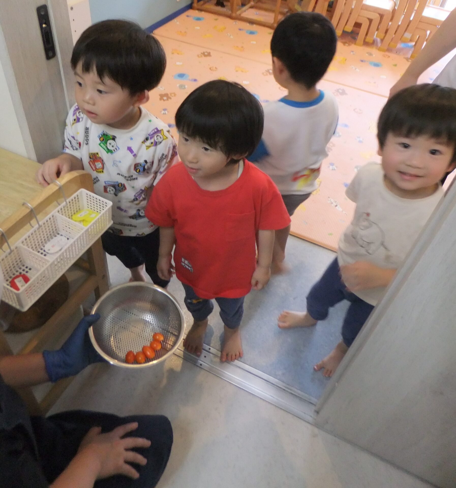 美味しそうにしたり、時には少し酸っぱそうにしたりとミニトマトの味によってさまざまな表情を見せながら食べる子どもたちです🥄
