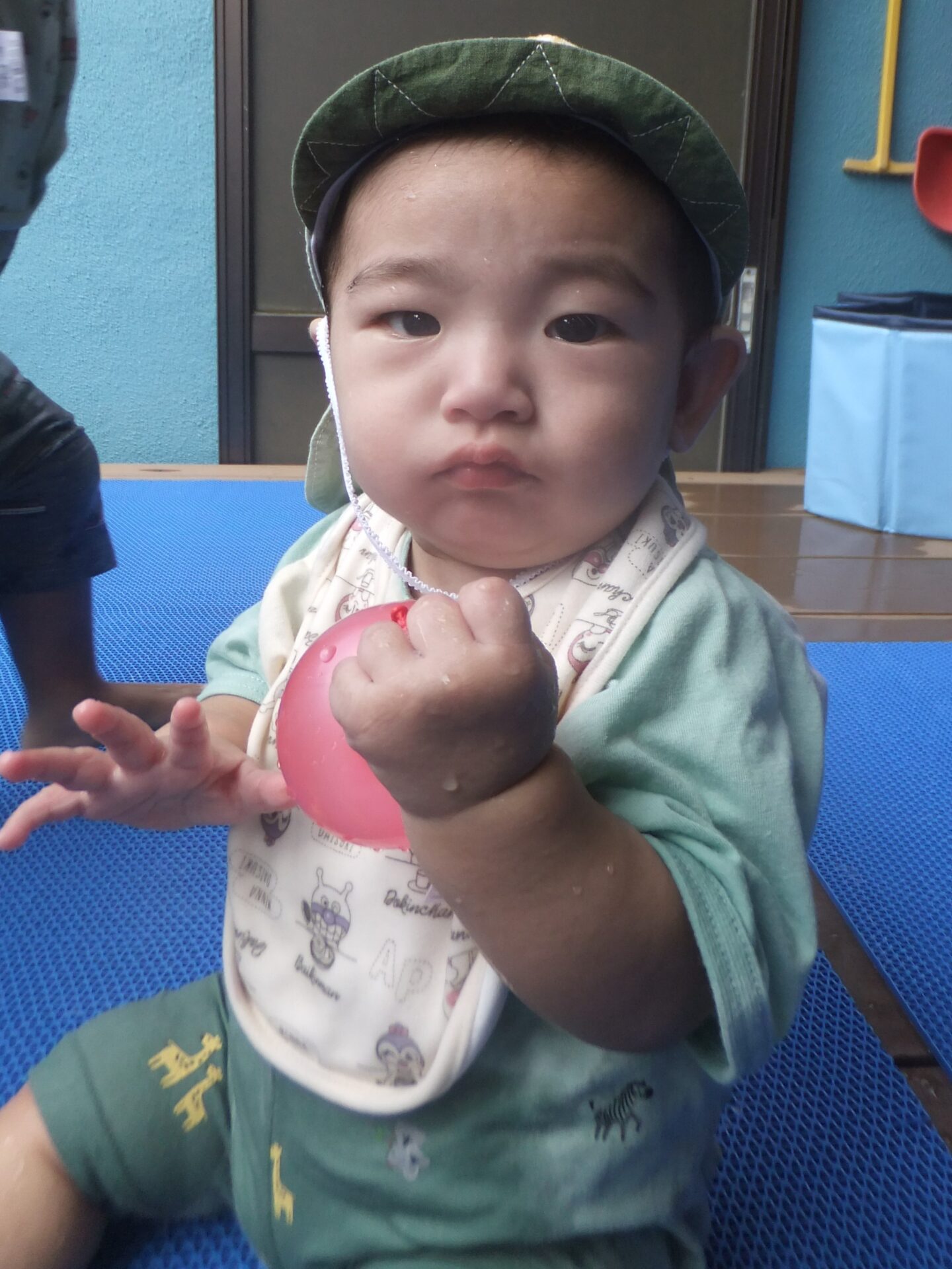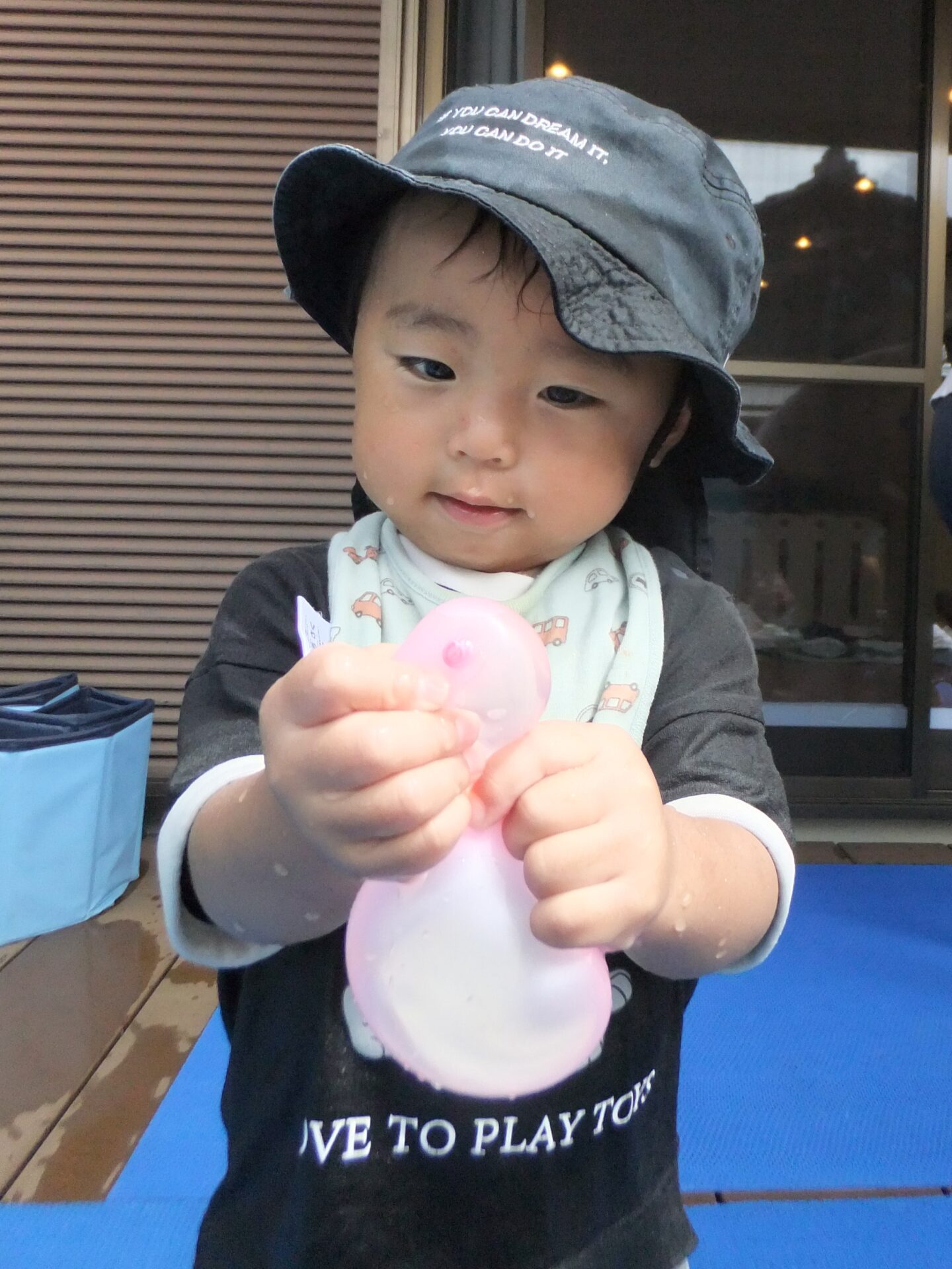 また、少し力をいれて水風船を持つとピュ~ッと水が出てくることが楽しくてにっこり!
