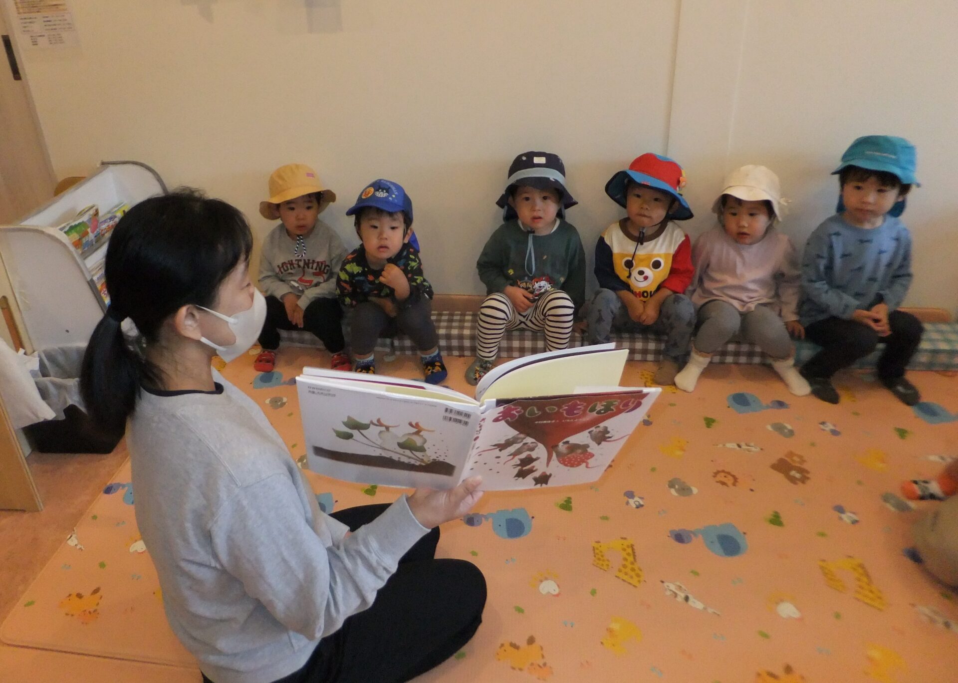 活動前に『おいもほり』の絵本を見たり『おいもごろごろ』の歌をうたったりすると、気分が高まっていました。