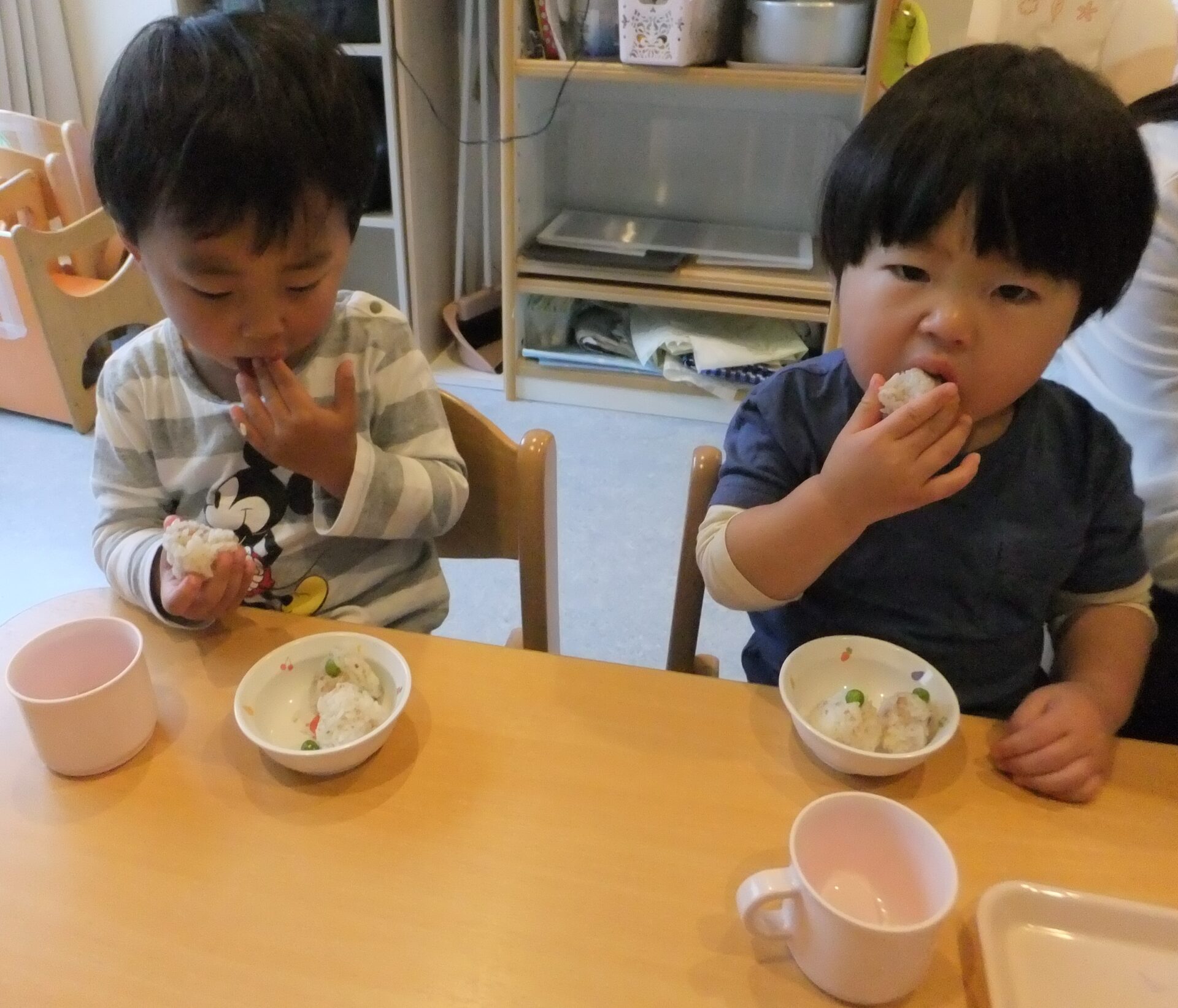 5月9日(金)に、2歳児さんがクッキングをしました。