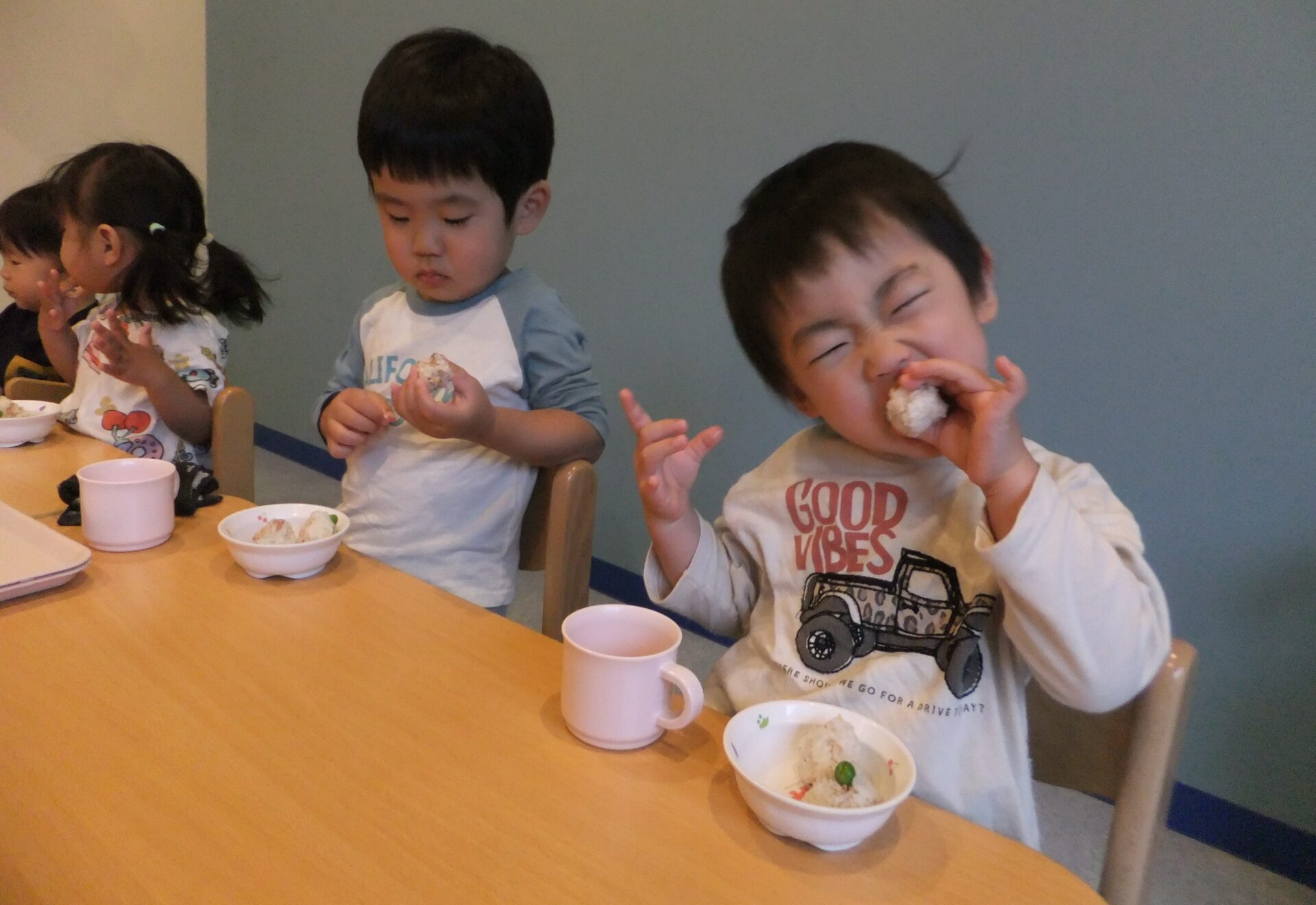 むいた豆は、その日の午後のおやつの”おにぎり”🍙に