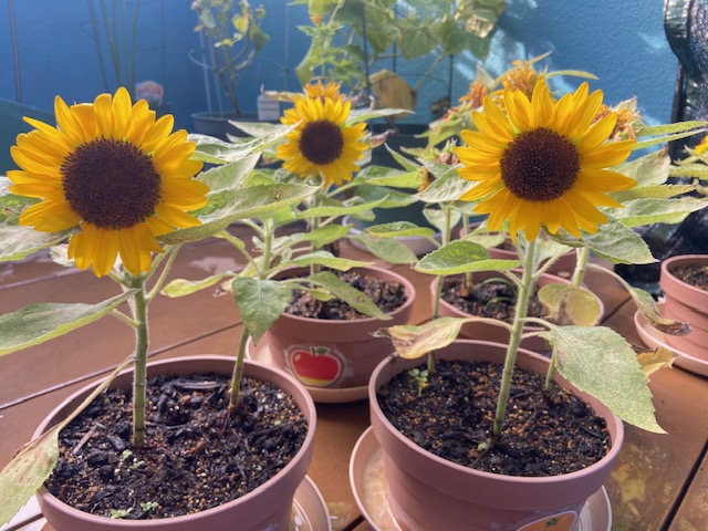 毎日 暑い日が続く中、2歳児さんが種から植えたひまわりが、元気いっぱいに花を咲かせました🌻