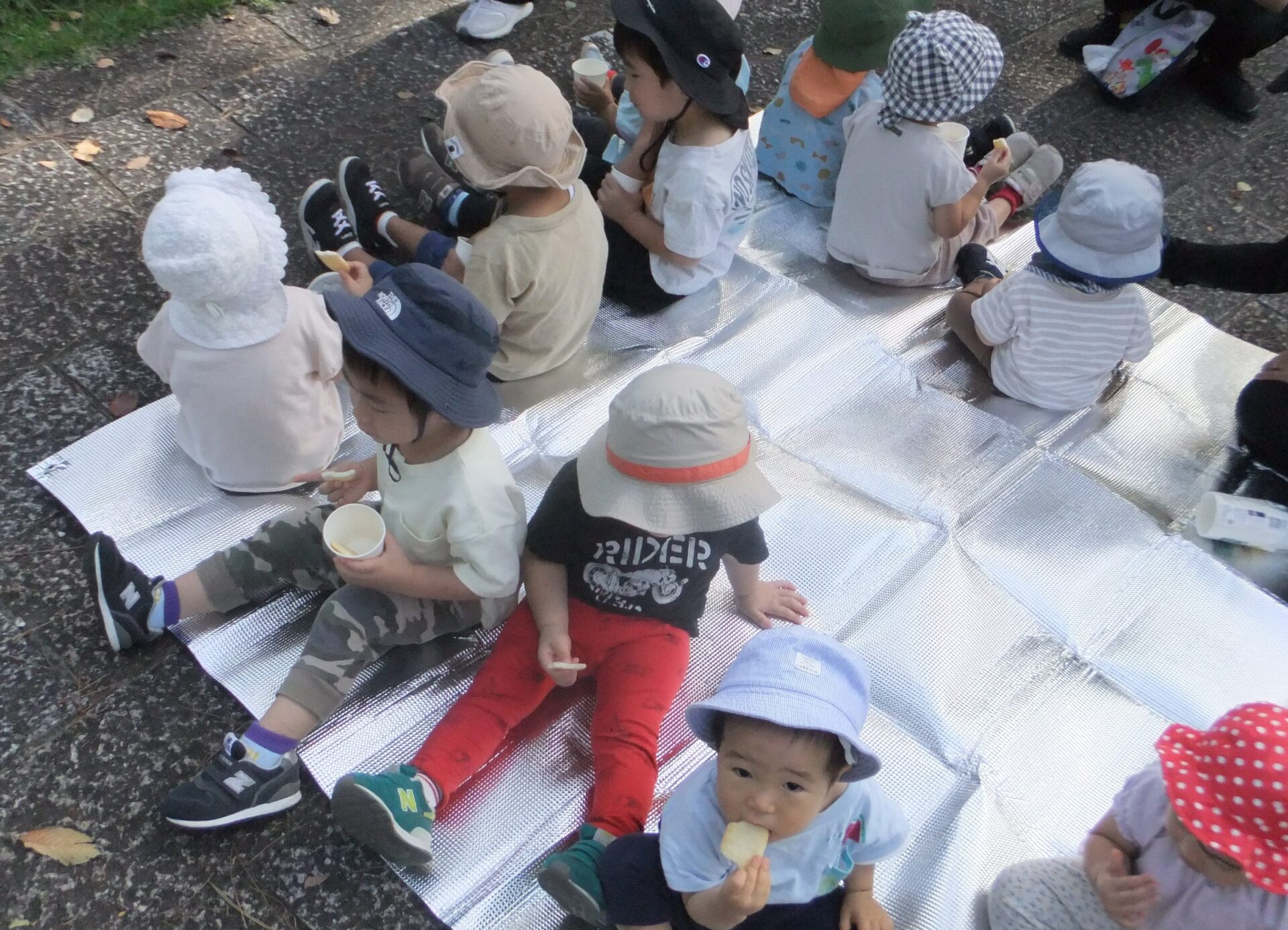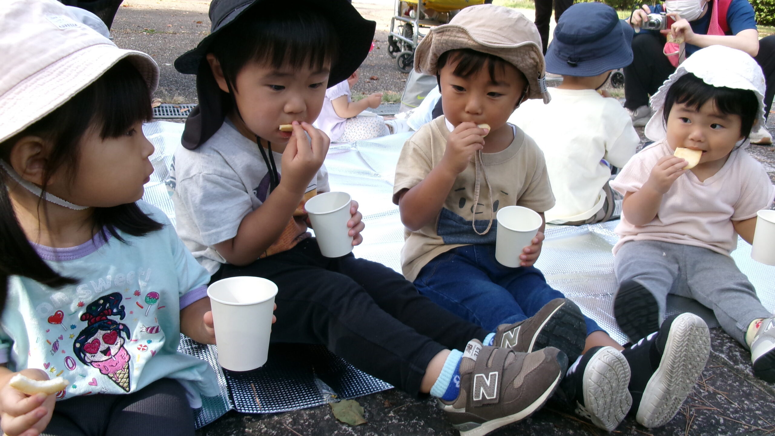 膳所公園に着くと、まずは朝のおやつを食べました🍘