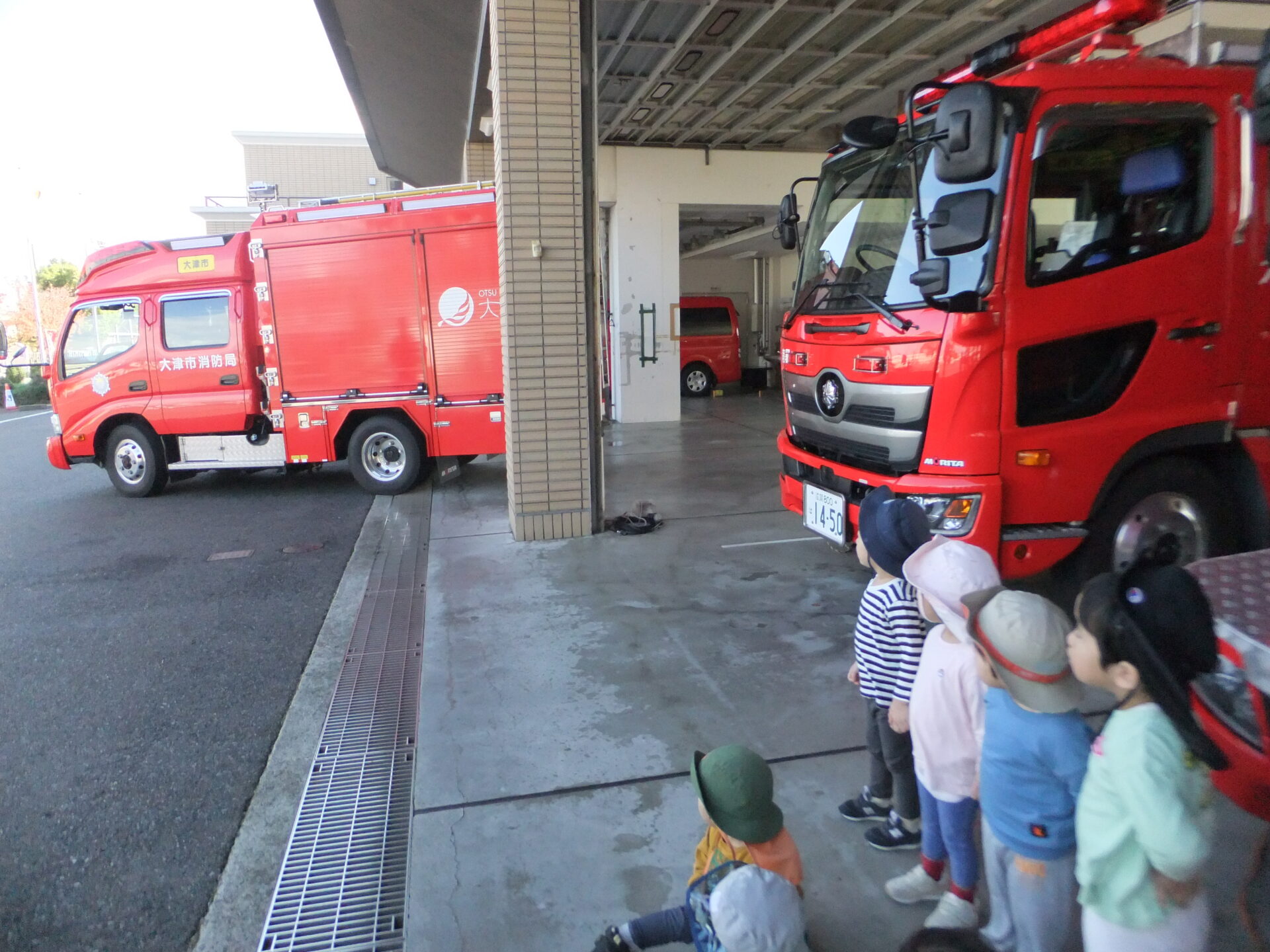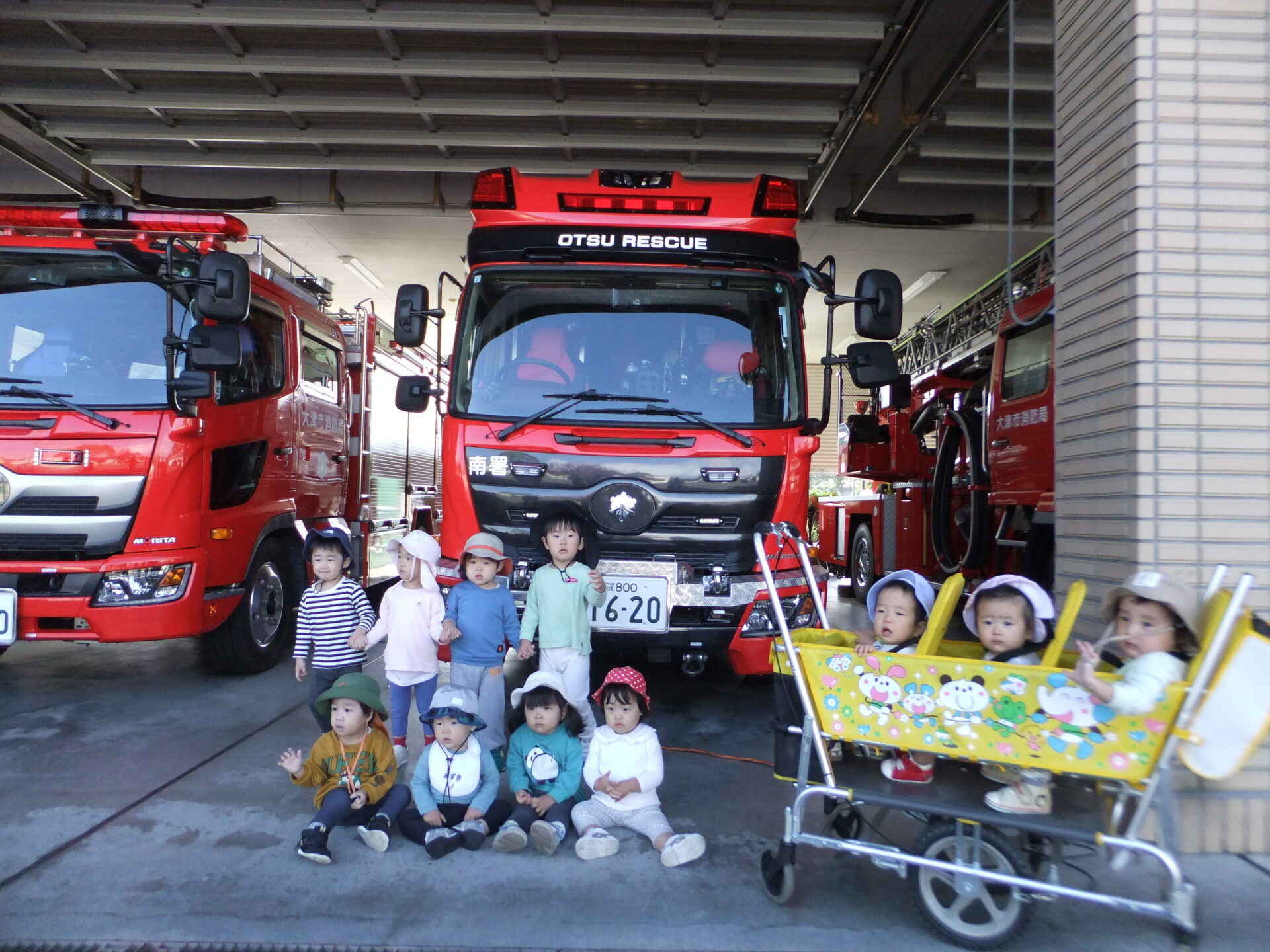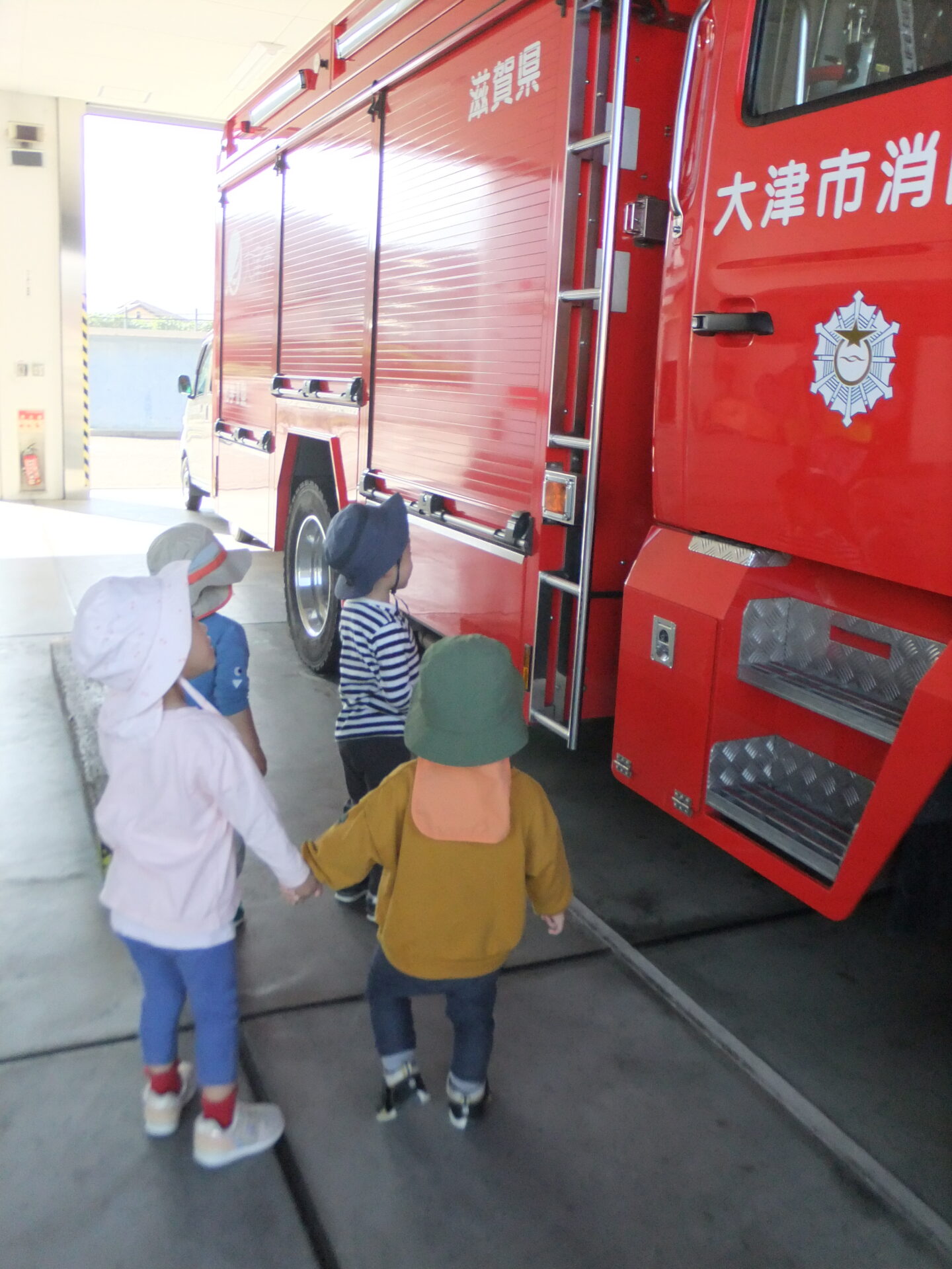 晴嵐小学校と晴嵐保育園に隣接している大津市南消防署へ散歩に行ってきました。🚒