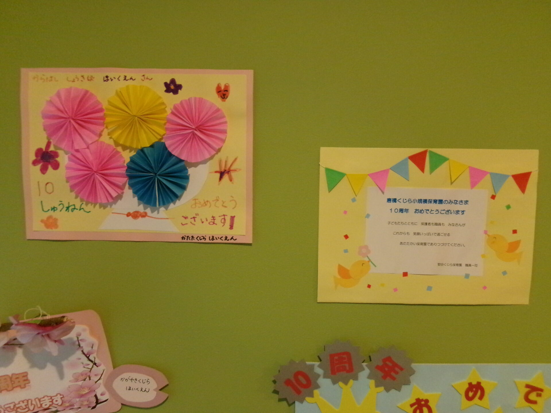 飾らせてもらっている玄関を通る度に指を差したり、眺めて喜んでいる子どもたちです。